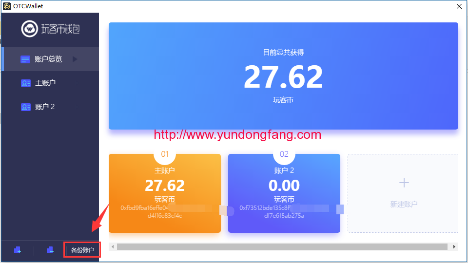 在链克口袋的主界面下面有一个备份账户的地方,点进入。