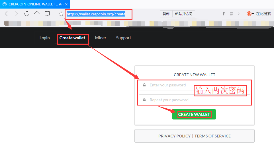 创建在线钱包:https://wallet.crepcoin.org/create