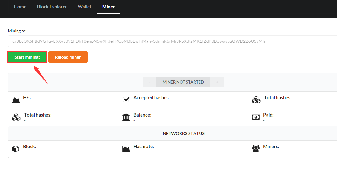 接下来网站就会自动生成一个钱包地址,然后再点击【GO TO MINER】