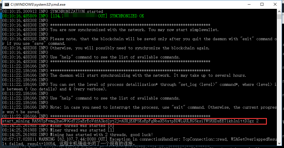 注:这个命令不是在钱包里执行的,需要到同步daemonWindows中操作。例如下图是我操作的