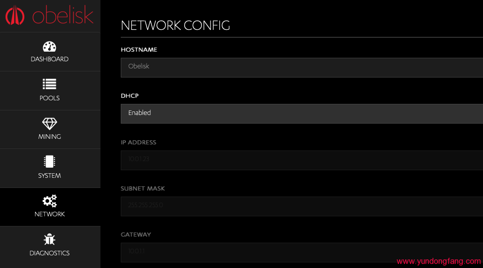 在您的矿工插入电源后,以正确配置启动并连接到以太网后,您可以继续使用方尖碑仪表板来配置您的池。